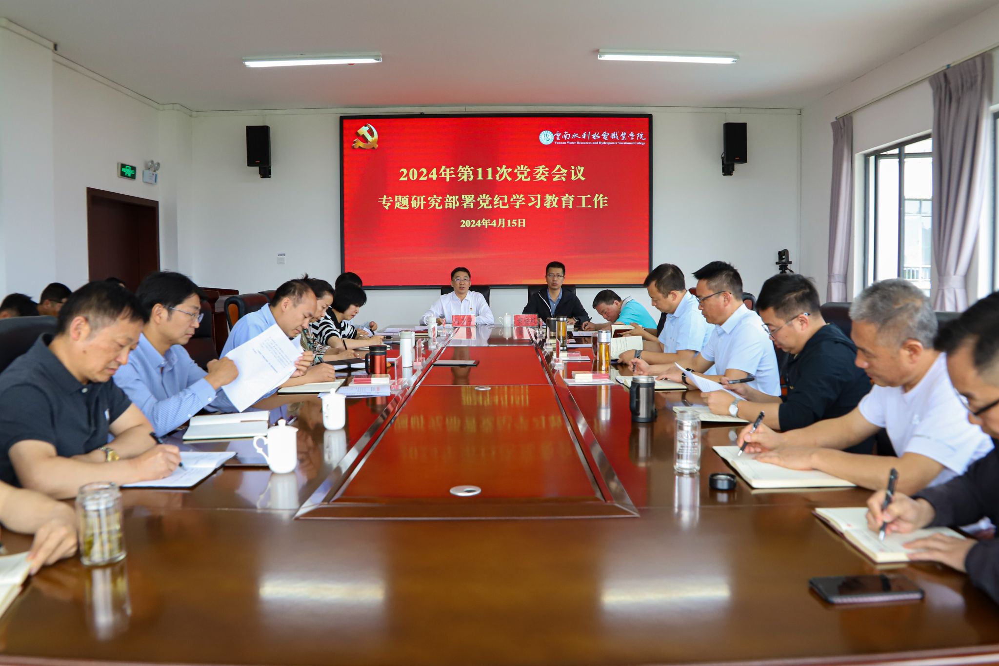 会议指出,在全党开展党纪学习教育,是党中央作出的重大部署。习近平总书记多次就开展党纪学习教育发表重要讲话、作出重要指示,为开展党纪学习教育提供了重要遵循。学校各级党组织和党员干部要提高政治站位,深入学习贯彻习近平总书记关于党纪学习教育的重要讲话和重要指示精神,深刻认识开展党纪学习教育的重大意义,切实把思想和行动统一到党中央决策部署上来,增强开展党纪学习教育的使命感、责任感和紧迫感,深化对加强党的纪律建设重要性的认识,高标准高质量开展党纪学习教育,推动各级党组织和领导班子从严抓好党的纪律建设,推动广大党员、干部强化遵守纪律的自觉,深刻领悟“两个确立”的决定性意义,坚决做到“两个维护”,形成推进中国式现代化云南实践的强大动力和合力,全面建设特色鲜明的区域性高水平高职学校。
